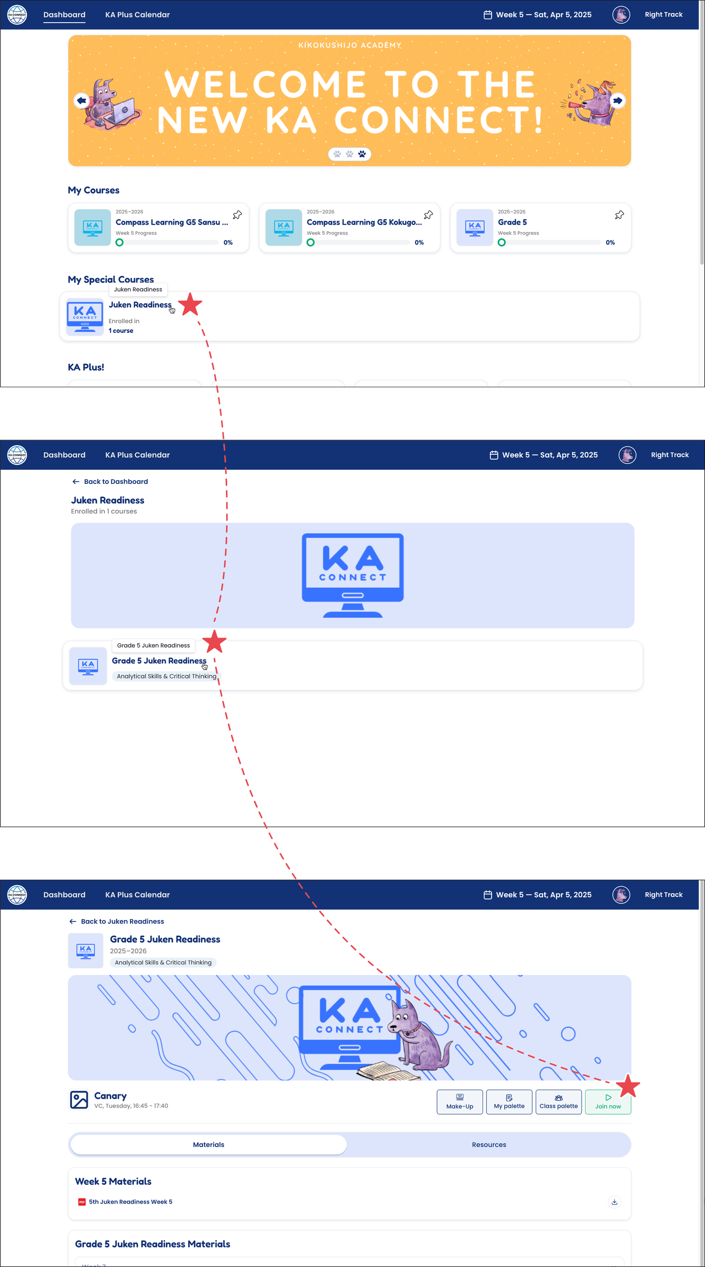KA Connect の「My Special Courses」からコースを選び、画面右側に表示される Join now をクリックすると自動的に Zoom が立ち上がります。講師が順番に入室を許可しますので、そのままお待ちください。